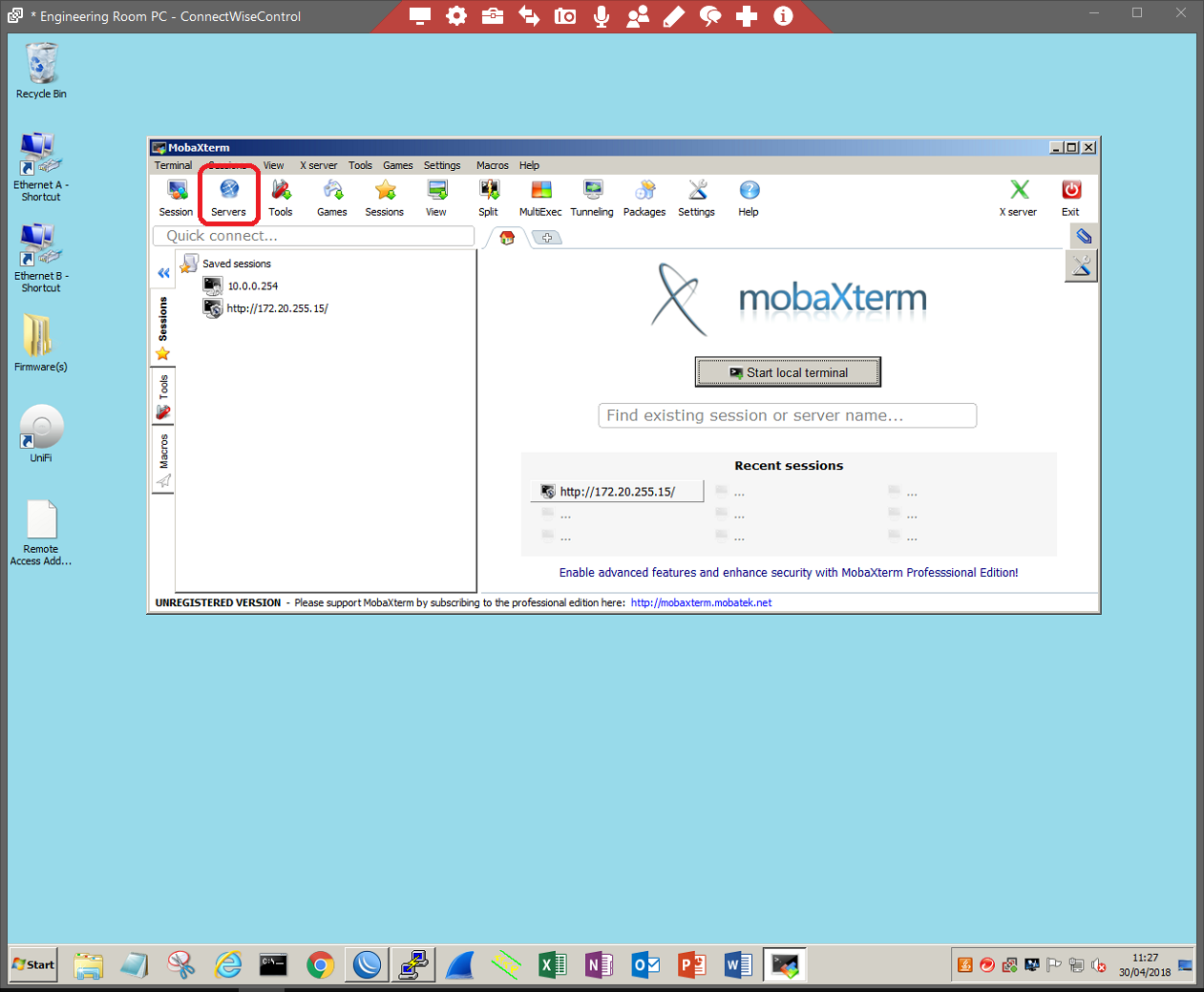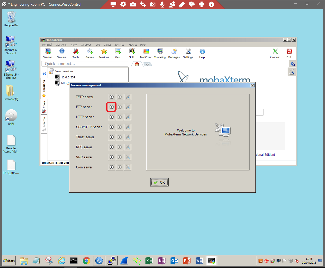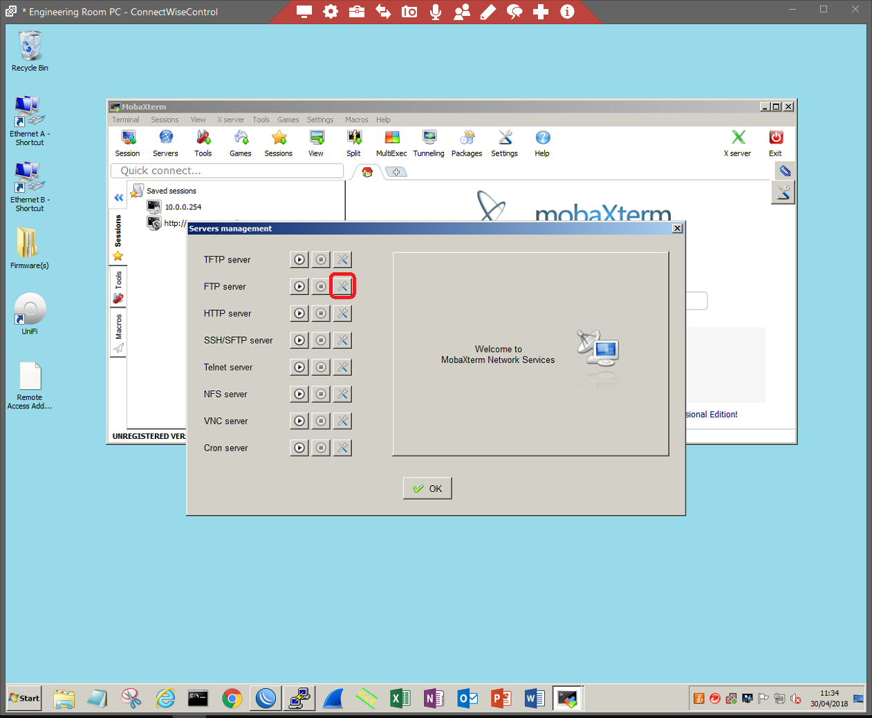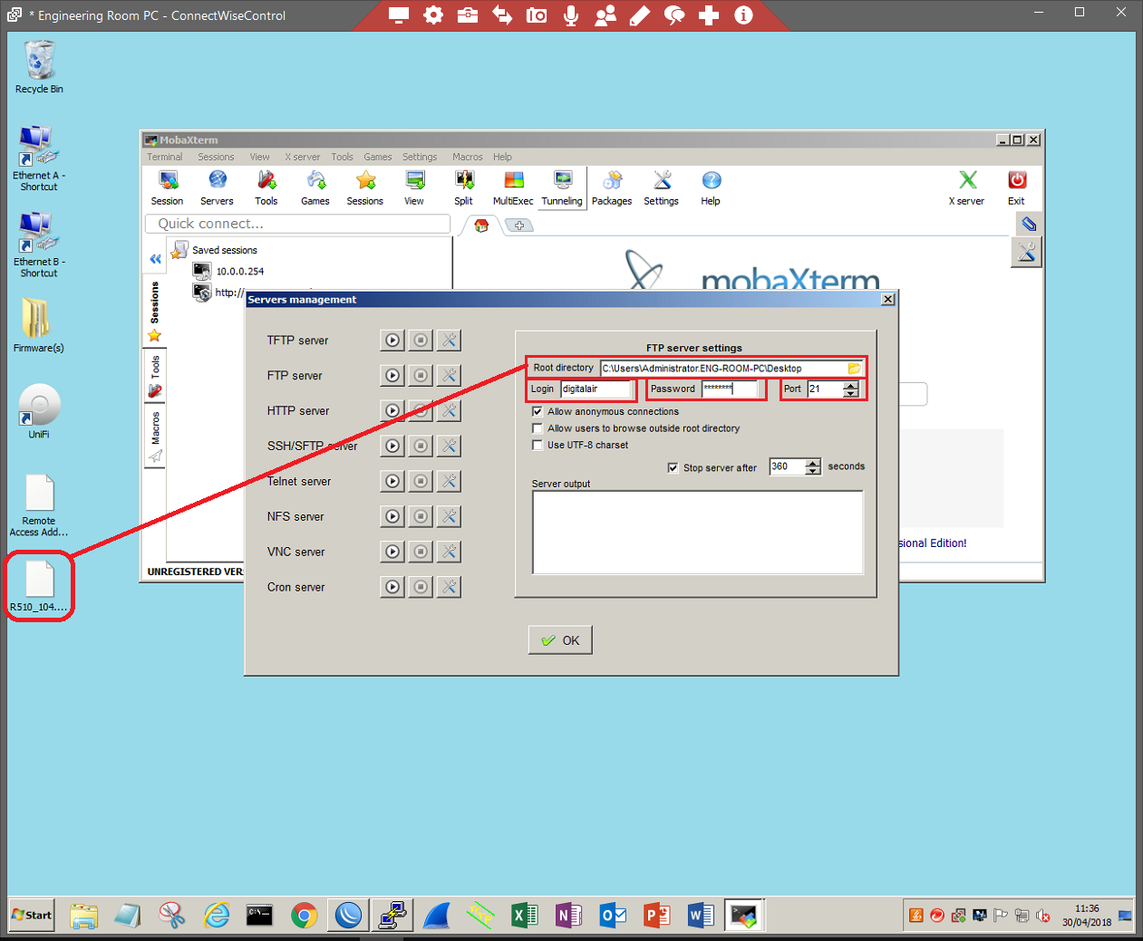 Start your FTP server. For the purpose of this document, we will be using MobaXterms FTP server.